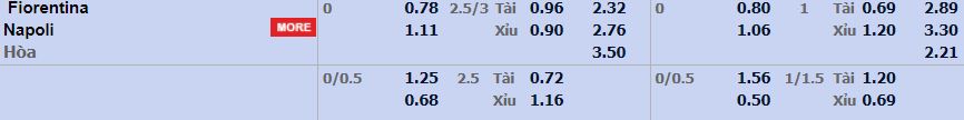 - Mức kèo nhà cái cược chấp trận này: Hòa – Được – Thua. Fiorentina ăn 0,78. Napolo ăn 1,11