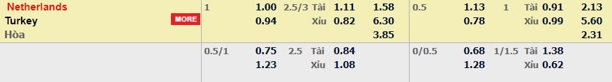 - Mức kèo nhà cái cược chấp trận này: Hòa – Được – Thua, Hà ăn 0,80. Hà Lan ăn 1,14