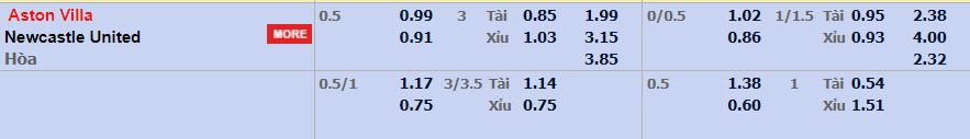 - Mức kèo nhà cái cược chấp trận này: Aston Villa chấp 0,5 Trái. Aston Villa ăn 0,99. Newcastle ăn 0,91