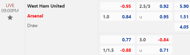- Mức kèo nhà cái cược chấp trận này: Arsenal chấp 1 trái. West Ham ăn 1,00. Arsenal ăn 0,84