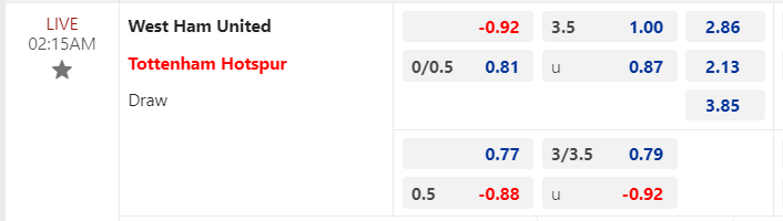 Tỷ lệ kèo bóng đá West Ham vs Tottenham – 02h15 – 03/04/2024