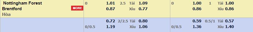 - Mức kèo nhà cái cược chấp trận này: Hòa – Được – Thua. Nottingham Forest ăn 1,01. Brentford ăn 0,87